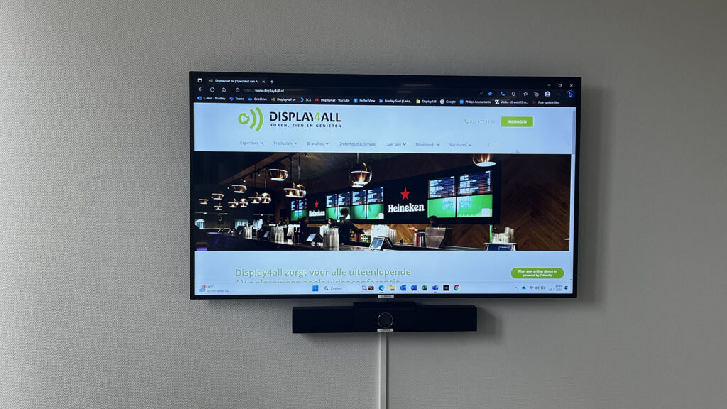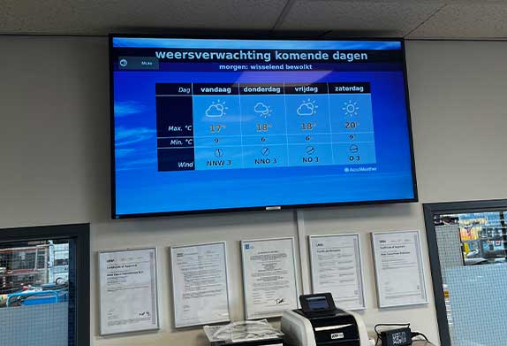 De vraag dit keer was om een vergaderruimte volledig in te richten en gebruiksvriendelijk te maken. Daarnaast wilden ze ook graag twee schermen voorzien van content bij de werkplekken bieden met bedrijfsinformatie, weerberichten, RSS-feeds en belangrijke mededelingen.